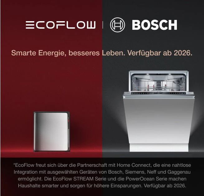 Auf der IFA 2025 in Berlin wurde eine spannende Kooperation angekündigt: EcoFlow und BSH-Hausgeräte (Bosch, Siemens, Neff, Gaggenau) wollen Haushaltsgeräte künftig automatisch steuern – basierend auf Solarstrom oder günstigen Strompreisen. ( )